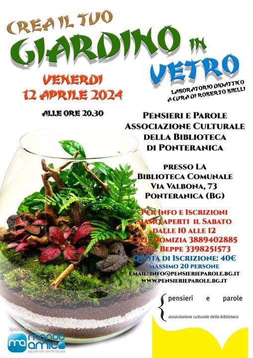 Una serata dedicata a tutti gli amanti della cultura orientale, con un laboratorio didattico per realizzare ciascuno il proprio giardino in vetro. Ci troveremo venerdì 12 aprile dalle ore 20.30 alle 22.30 in biblioteca. Sempre sotto la guida dell’esperto Roberto Bielli.